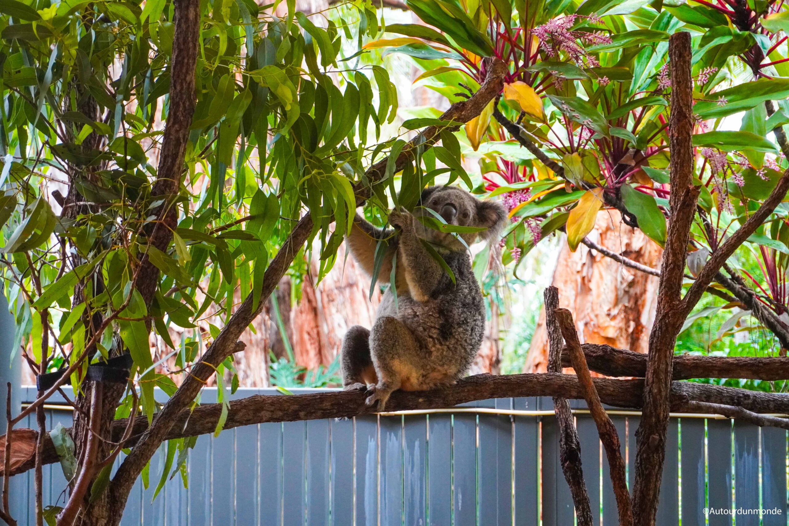 Le Wildlife Coffee propose une section « zoo » où les visiteurs peuvent découvrir une grande variété d’animaux typiques de l’Australie. Cependant, cette expérience est loin de nous avoir convaincus. Les animaux y sont confinés dans des enclos, et beaucoup semblent visiblement en détresse, ce qui nous a laissés frustrés et mal à l’aise. Il est d’autant plus difficile de ne pas se sentir en décalage en sachant qu’il est possible de rencontrer ces mêmes animaux dans leur habitat naturel, en liberté sur l’île.